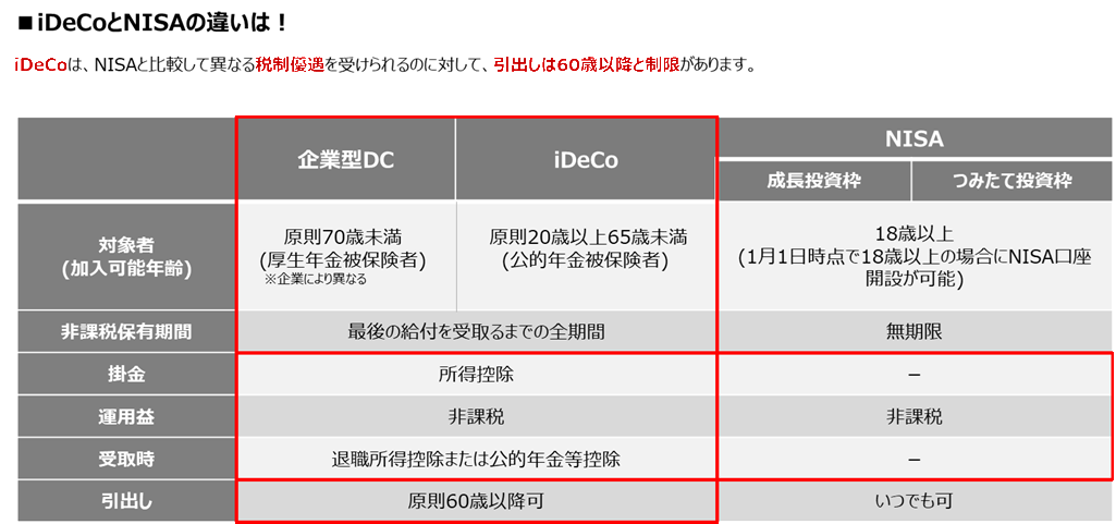 iDeCoとNISAの違いについては、以下をご覧ください。